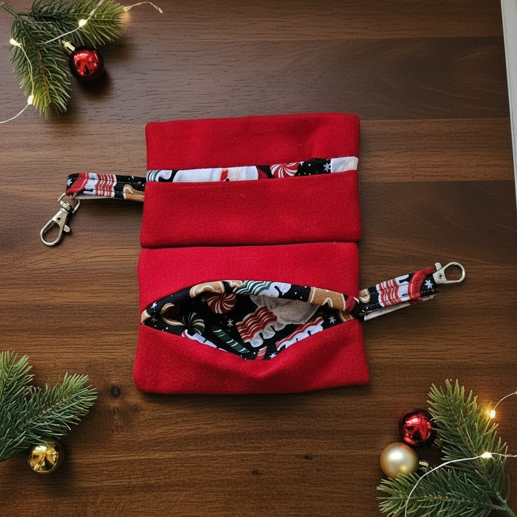 When we have leftover fabric scraps on hand, we'll find a purpose! Introducing our Scrappy Tissue Holders - the ultimate way to stylishly store your tissues while keeping them within reach. Equipped with a strap for attaching to bags or keychains, and a pocket for effortless tissue retrieval, these holders are the perfect on-the-go accessory. Plus, most tissues or napkins can be folded to fit snugly inside the pocket, negating the need for extra plastic packaging. Cute and environmental-friendly... just the way we like it!